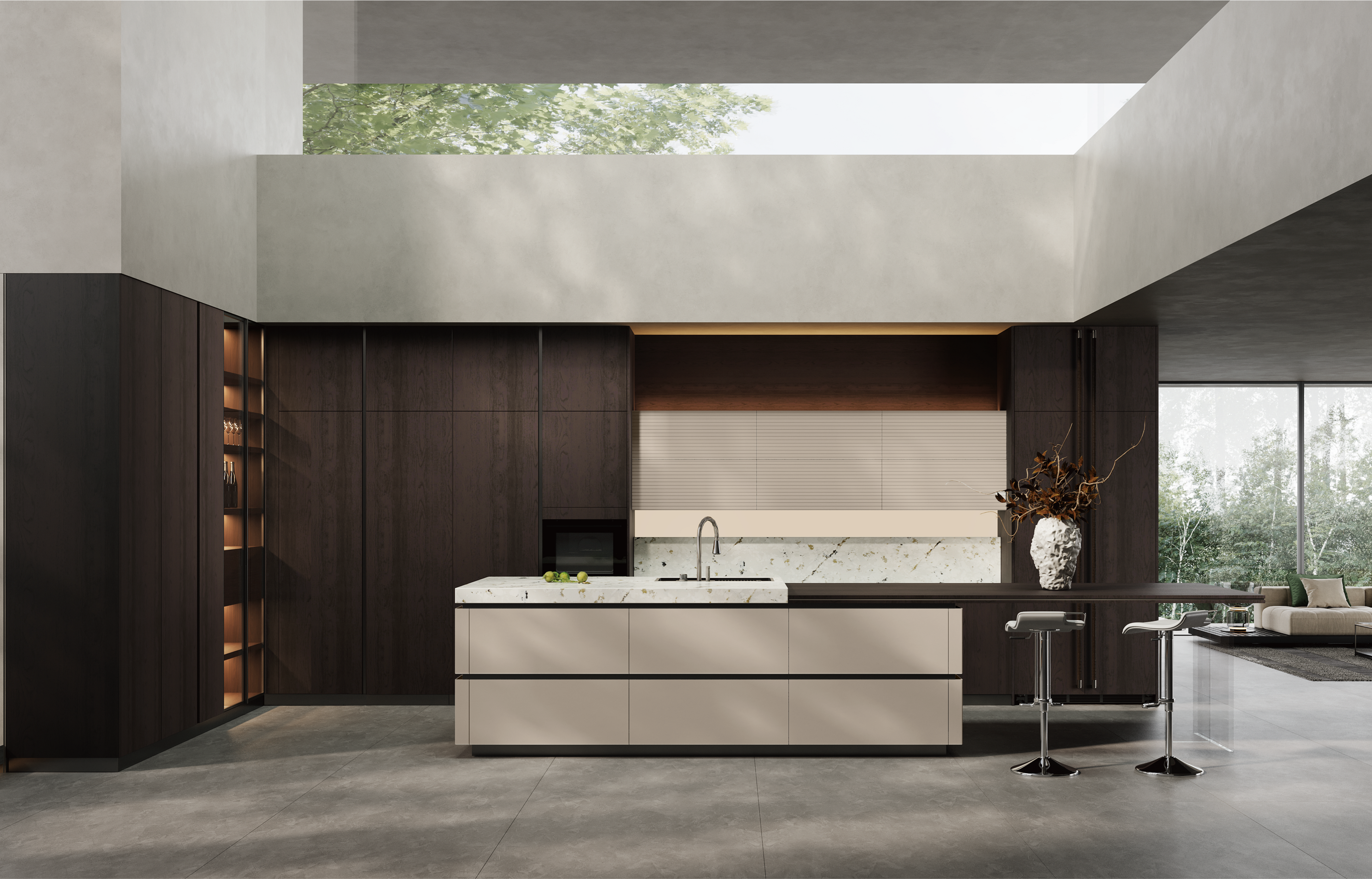 通过918博天娱乐旗舰厨柜量体裁柜,定制出适合主厨下厨的烹饪区和洗涤区的舒适高度。